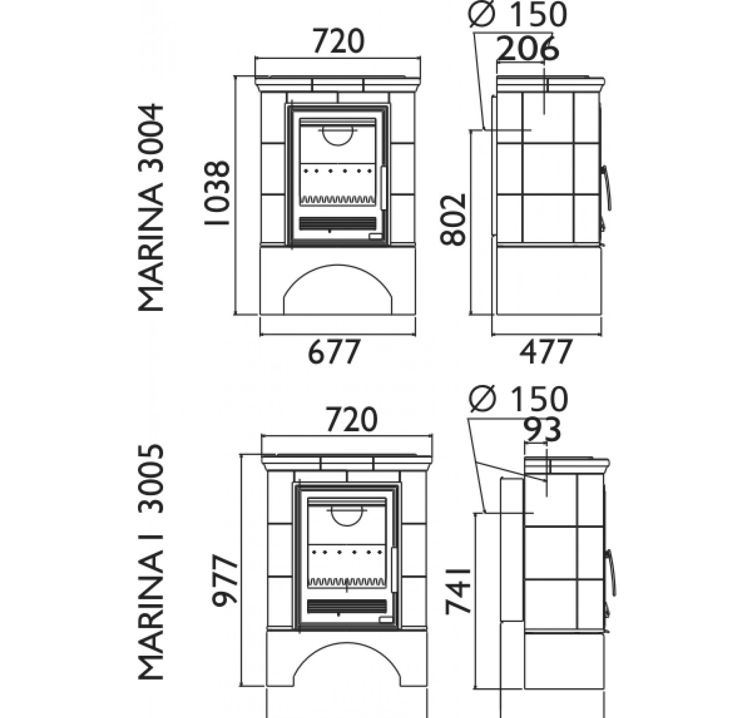 Отопительная кафельная печь ABX Marina ориентирована на обогрев помещения и украшение интерьера. При сравнительно небольших габаритах печь Marina обладает системой длительного горения и способна обогреть большие пространства при сжигании небольшого количества топлива. За час печь в номинальном режиме расходует 1,9 кг сухих дров. Облицовка выполнена из печного кафеля, который отдает тепло еще несколько часов, после того как печь протопилась. Топка кафельной печи Marina бывает чугунная или комбинированная (сталь+чугун). Выход дымохода в двух вариантах.
