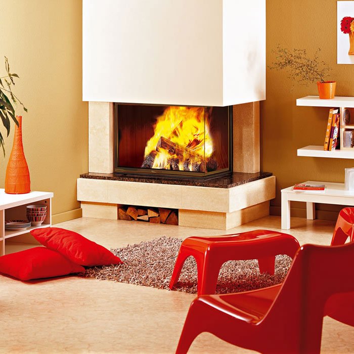 Пристенно-угловой камин под закрытые топки.