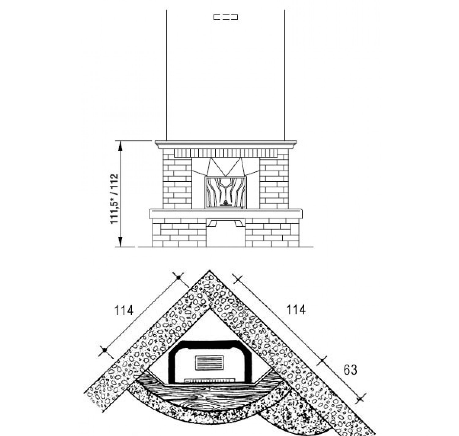 Этот компактный угловой камин от производителя Palazzetti выполнен из мрамора Soleado. Его столешница в свою очередь изготовлена из полированного мрамора Giallo Reale. Эта облицовка декорирована каминной полкой из темного дерева и оснащена отделением для хранения дров.