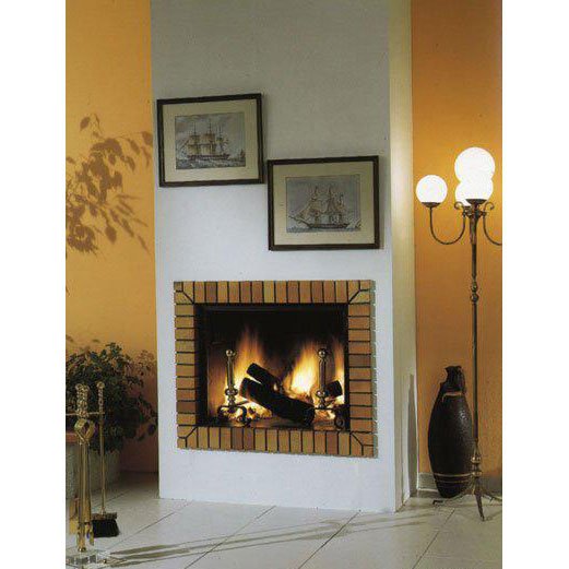 Камин серии Stylo из огнеупорного кирпича толщиной 5 см в виде четырехстороннего обрамления к топке. Металлическая топка 904 с колосником и зольником.
