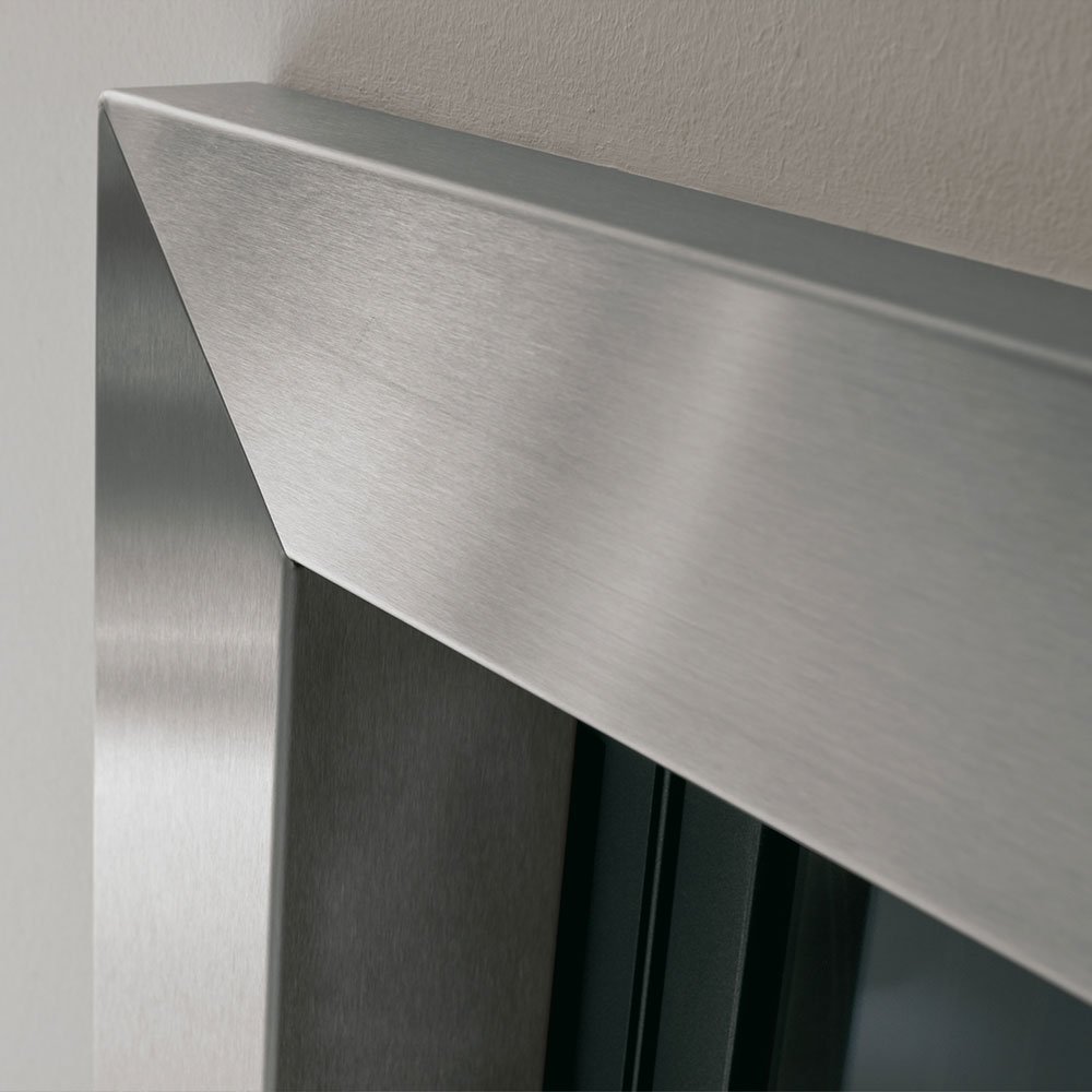 Настенная рамка, выполненная из сатинированной или покрашенной в серый цвет стали.