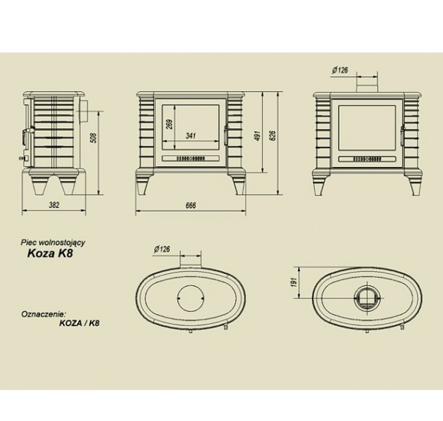 Печь-камин (буржуйка) Koza/K8 турбина