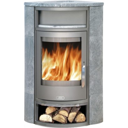 Печь камин ABX Polar 6 угловой компактна и практически не занимает места в комнате. Вы сможете наблюдать за горящим огнем, находясь в любой точке комнаты. Для наилучшего обзора в угловой печь камин устанавливают изогнутое стекло. Полукруглое стекло, повторяющее форму изогнутой двери топки, очень прочное, однако следует избегать механических ударов. Можно разогреть чай в специальном углублении. Есть отделение для сушки дров.