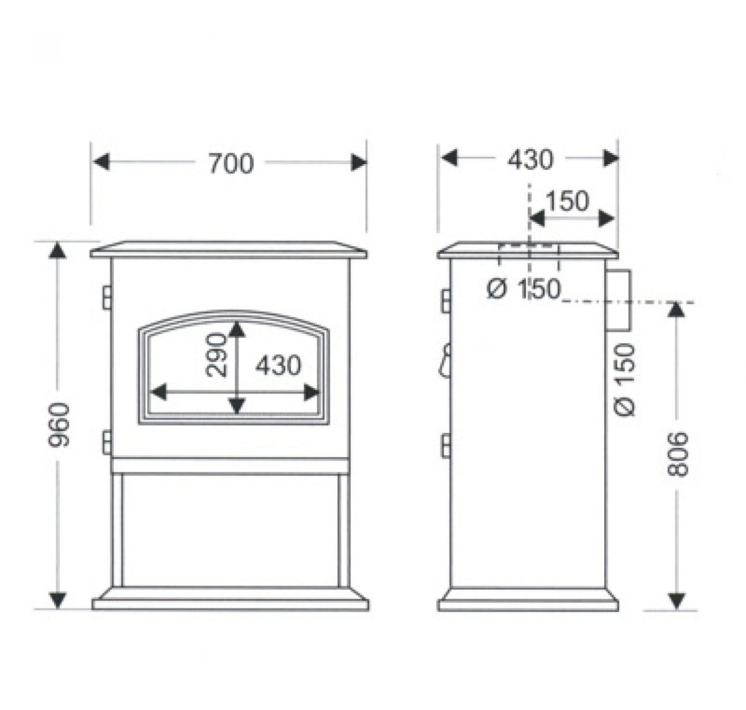 Отопительные печи имеют камеру сгорания полузакрытого типа. Они работают на дровах и/или на брикетах лигнита. Эти устройств предназначены для установки у стены и могут переноситься на другое место. Соединение с дымоходом производится посредством труб, соответствующих нормам NFD 35-302 и выполненных из эмалированной или нержавеющей листовой стали. Для этих отопительных печей соединения должны выводиться в индивидуальную дымовую трубу.