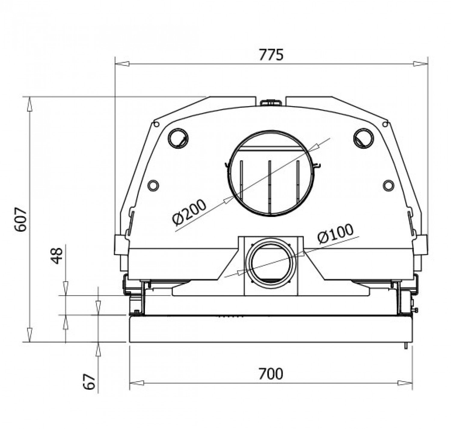 Стальная топка с открытым гидроконтуром. Дверца открывается в сторону.