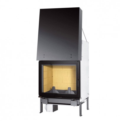 Универсальная топка изготовлена из чугуна, футирована шамотным кирпичом. Плоское стекло. Подъемная дверца.