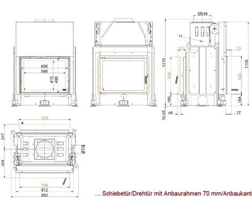 Топка Stil-Kamin Tunnel 51/67 с подъёмом с одной стороны.