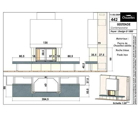 Цена указана за камин в стандартном исполнении (см. чертеж) из указанных материалов без топки.