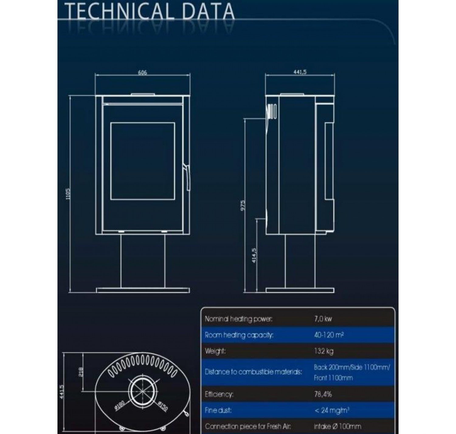 • Диаметр дымохода, (мм)
