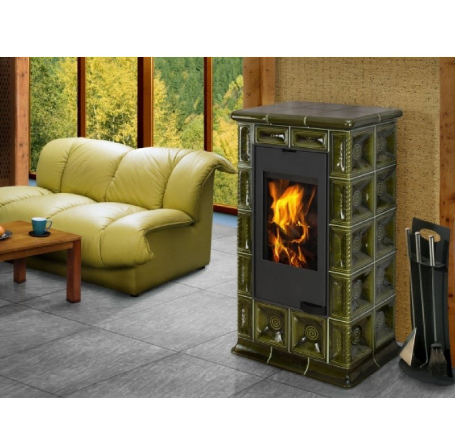 С помощью изразцового декора Ваш дом преобразится до неузнаваемости и станет настоящим произведением искусства. Большие керамические блоки, которые используются в облицовке данной модели также несут функцию теплонакопительных модулей (аккумуляция), которые позволяют излучать тепло в течении нескольких часов после того как огонь погаснет. Данная модель отлично подходит для отопления любого помещения, объем которого не превышает 220 м3. Застеклённая дверца повышает визуальный контакт с пылающим огнем. Керамическая облицовка оригинальна, но вместе с тем, сдержанно элегантна. Аккуратно сделаны и обработаны мельчайшие элементы, углы, плавные линии.