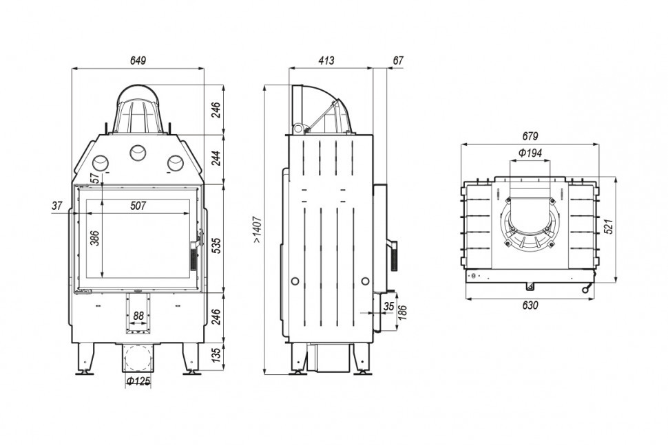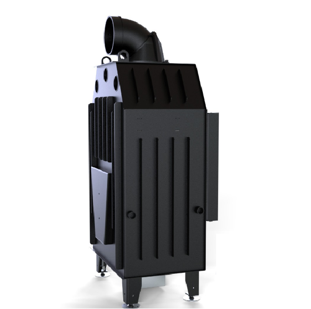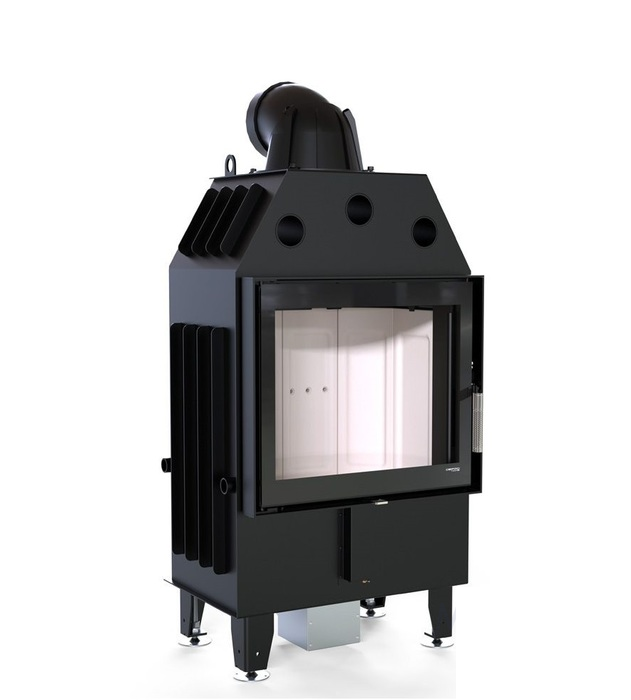 Изготовлена из стали с порошковым покрытием и имеет эффективность нагрева 80,1 %. Устройство с центральной подачей воздуха снаружи и возможностью ее регулировки. Специальная конструкция на трубе для подачи воздуха в топку, дает возможность изменить направление подачи воздуха на боковое. Плотно размещенные радиаторы способствуют передачи больше тепла окружающей среде, а воздуховоды повышают эффективность камина.