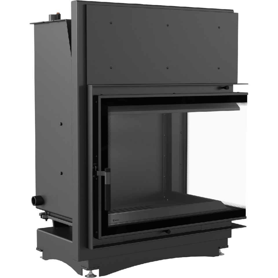 - Угловая топка с цельным Г-образным стеклом.