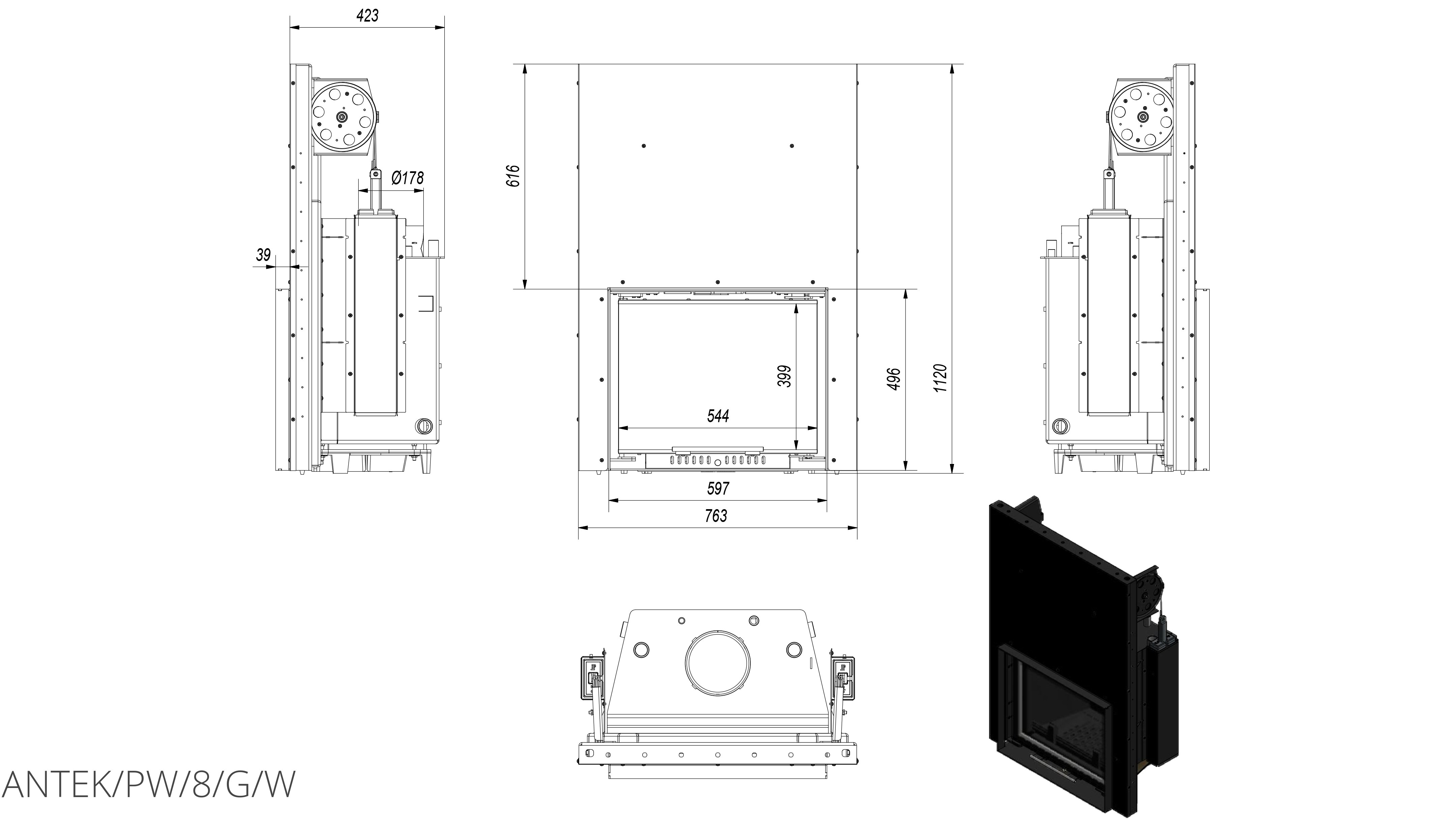 Каминная топка Kratki Antek/PW/8/G/W
