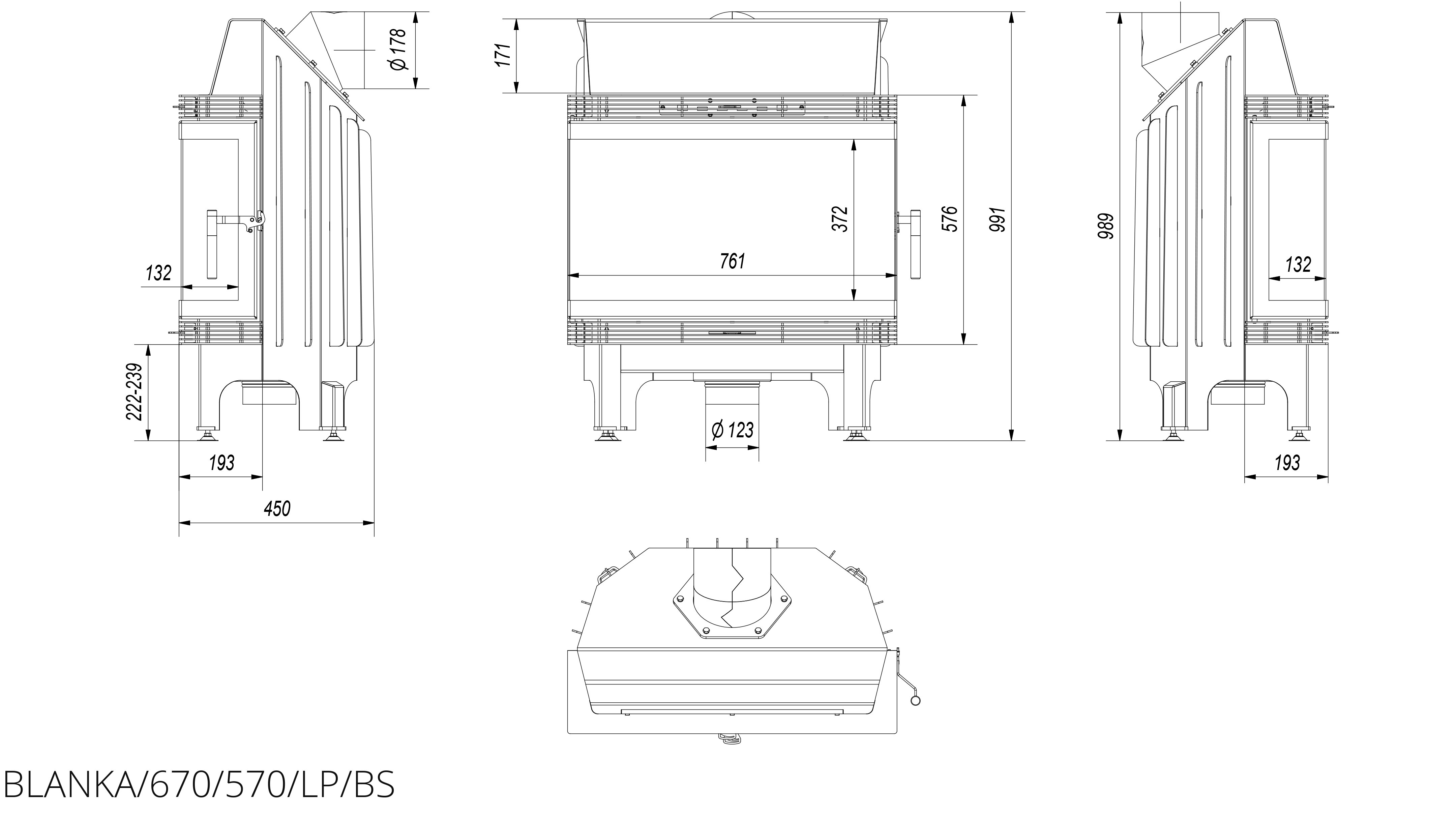 Каминная топка Kratki Blanka/670/570/LP/BS