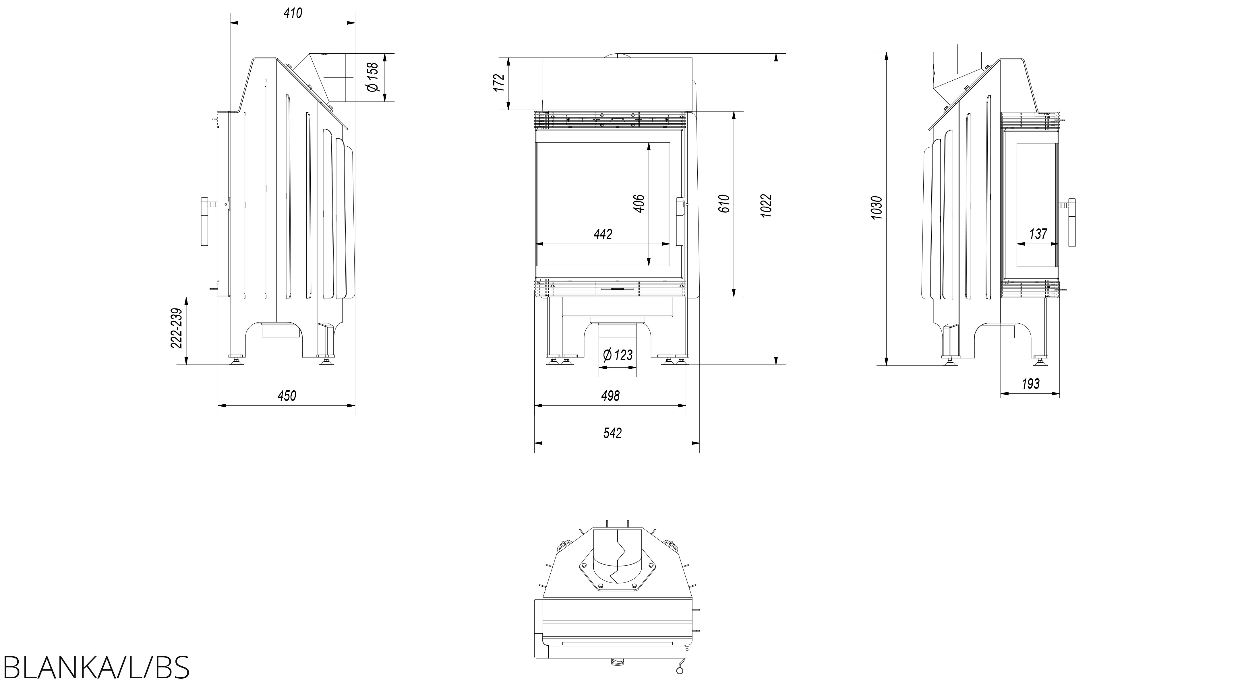 Представленная модель – вариант для установки в угловой камин. Топка Blanka/L//BS имеет стеклянную дверцу угловой формы, расширяющую обзор. Топка изготовлена из стали, предназначенной для работы при высоких температурах, повышает тепловую эффективность топки керамическая футеровка камеры сгорания и высокий дымосборник. Топка имеет встроенный подвод наружного воздуха.