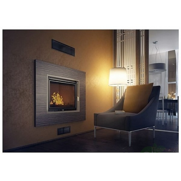 • Дверь каминной топки декорирована стеклом, которое выдерживает температуру до 750 градусов.