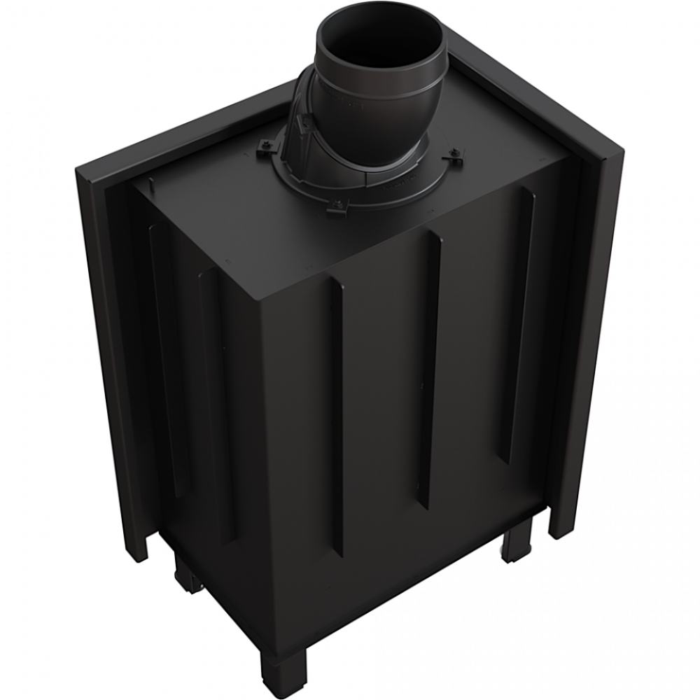 - Кроме того, для топки используется система чистого стекла (воздушная завеса), то есть воздух подается прямо на стекло через систему каналов, расположенных по бокам камина. Таким образом, кислород поступает в верхнюю часть камеры сгорания, где происходит сгорание газов, возникших в процессе сжигания дров, что дополнительно уменьшает выброс вредного СО в атмосферу.