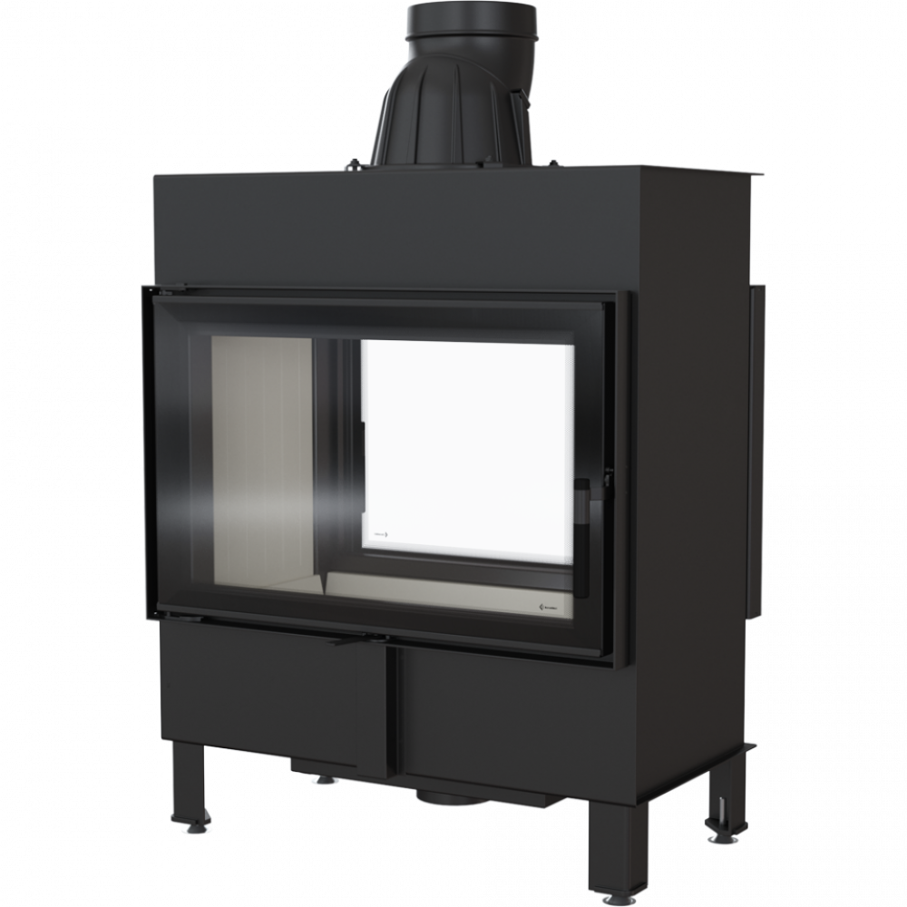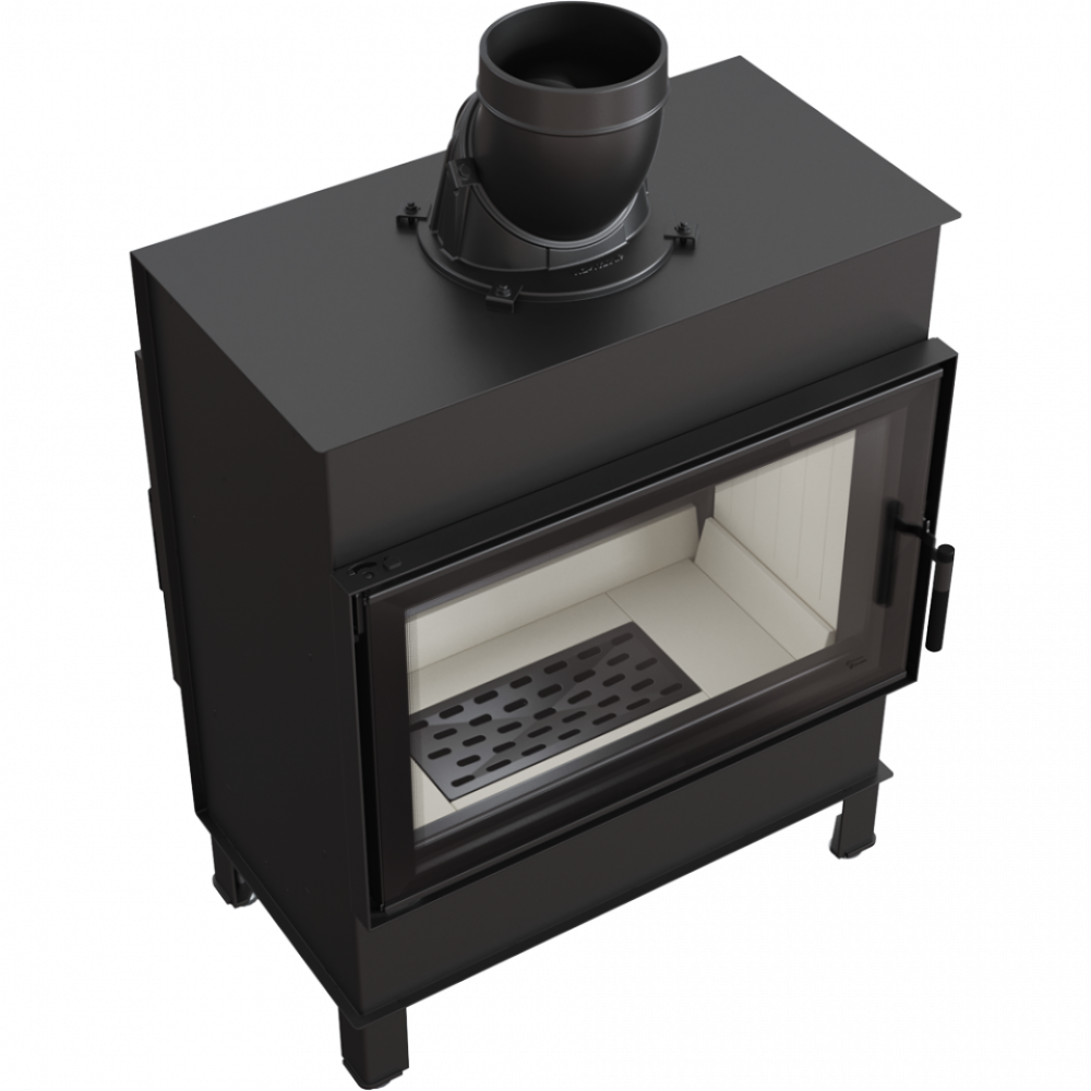- Модель оснащена подвижным дымоходным отверстием, так что во время монтажа нет необходимости покупать дополнительные колена. Можно легко подобрать угол подключения топки к каминной инсталляции.
