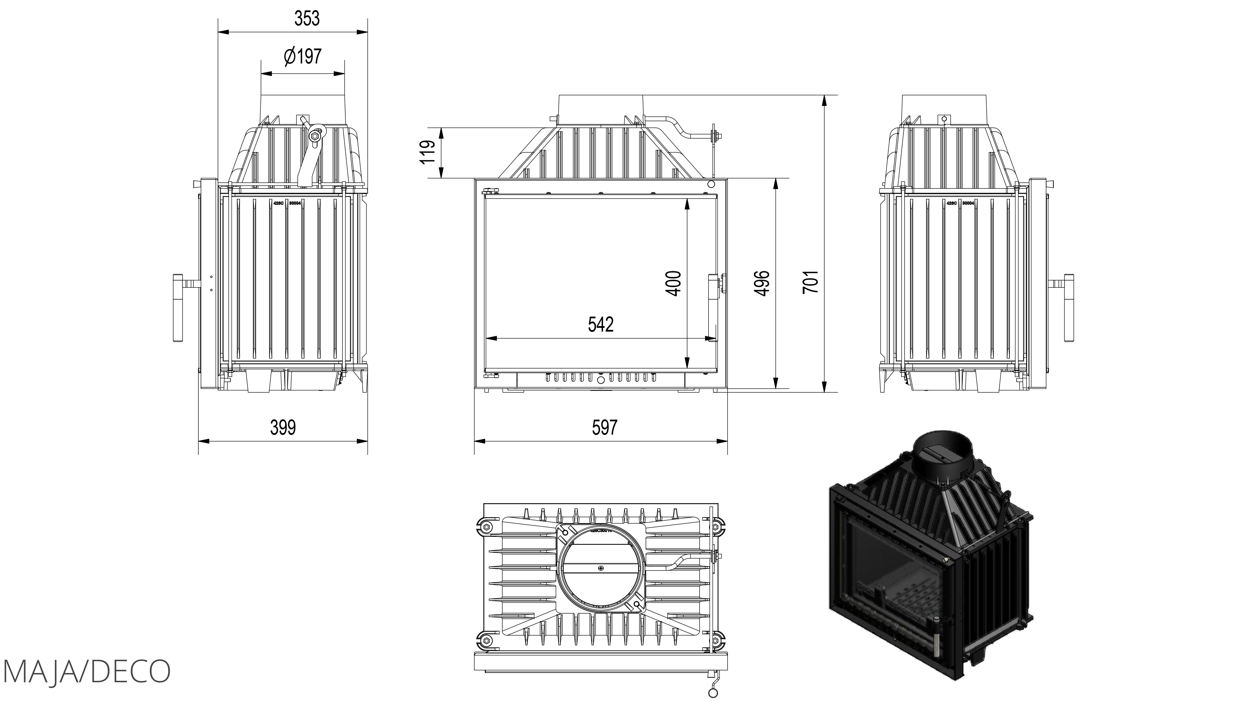 Чугунная каминная топка Kratki Maja/Deco выгодно отличается по цене среди аналогов других производителей. Данная модель относится к агрегатам непрерывного действия.