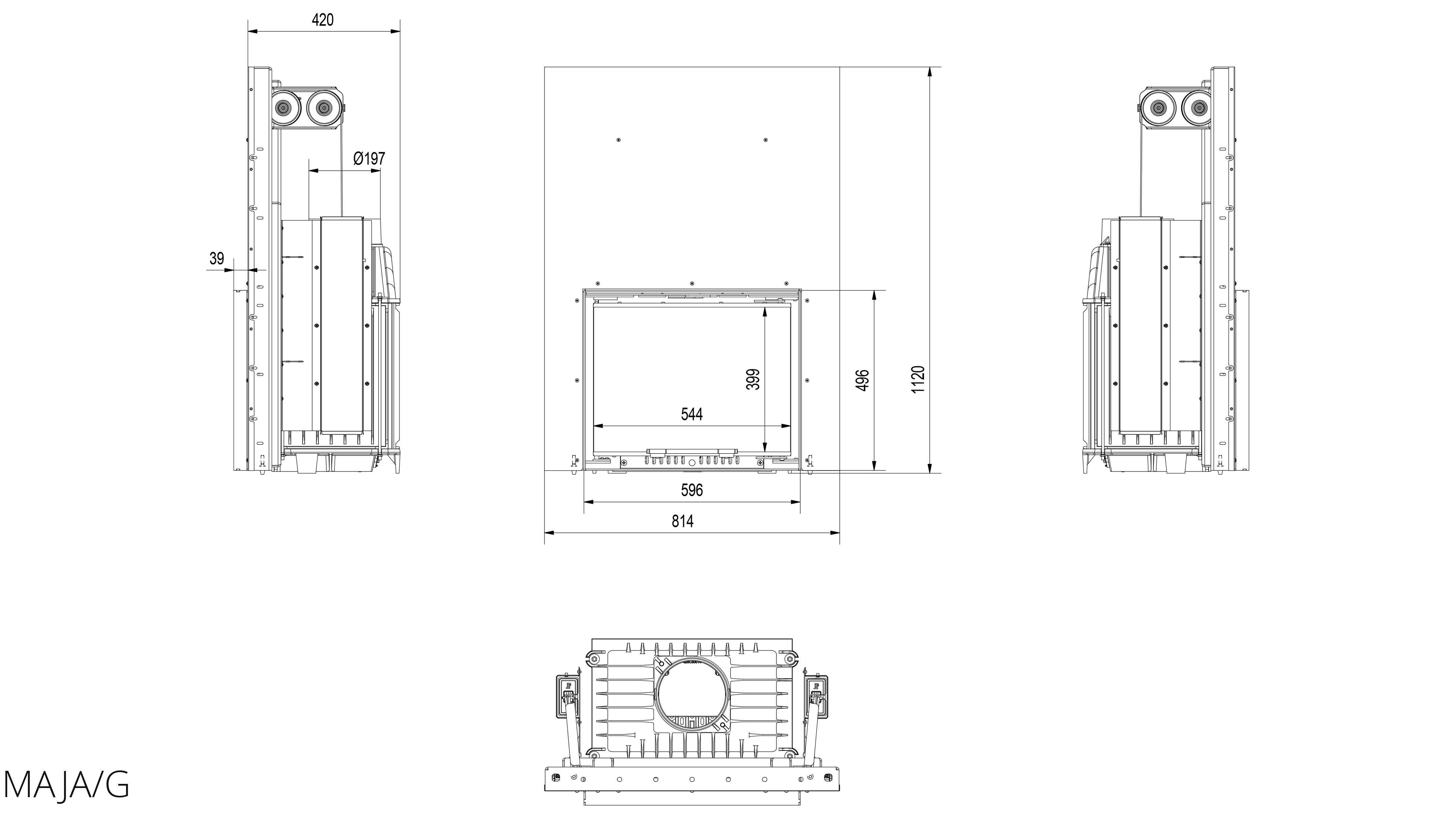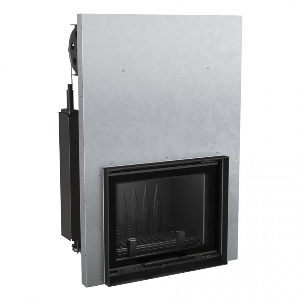 Представленная модель имеет механизм подъема дверцы вверх – «лифт» или «гильотина». Так как модель встраиваемая, то сам механизм в конечном итоге не виден, зато при открытой дверце топка Maja/G – это полноценный дровяной камин в современном исполнении.