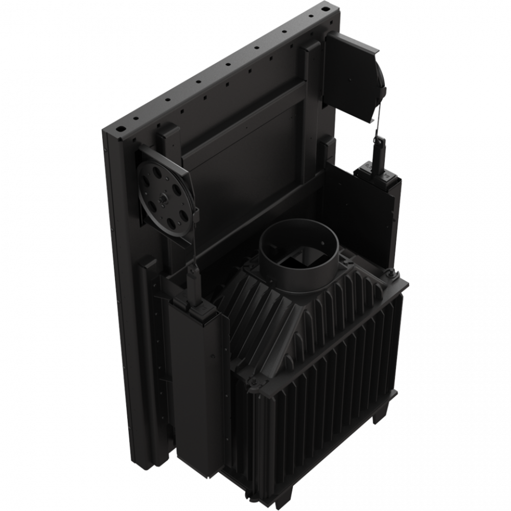 - Повышенная эффективность работы топки благодаря ручному регулированию тяги дымохода с помощью встроенного шибера.