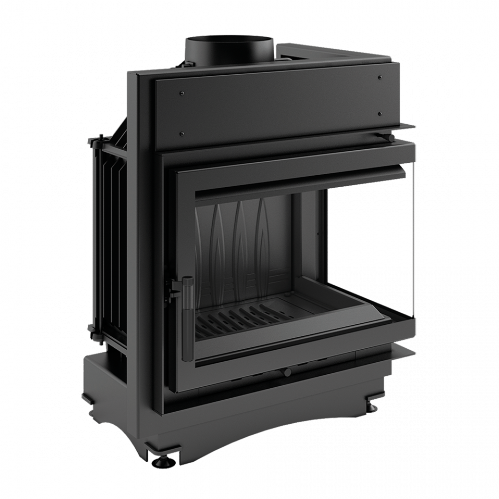 Модель Maja/P/BS имеет угловое стекло, расположенное с правой стороны, представляющее прекрасный обзор и в тоже время защищающее помещение от попадания искр. На фронтальной части топки расположены ручки, с помощью которых можно регулировать подачу воздуха для горения и открытие шиберной заслонки.