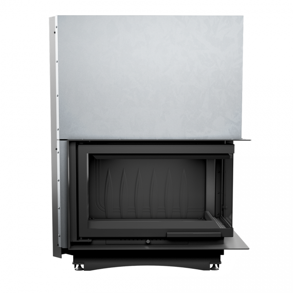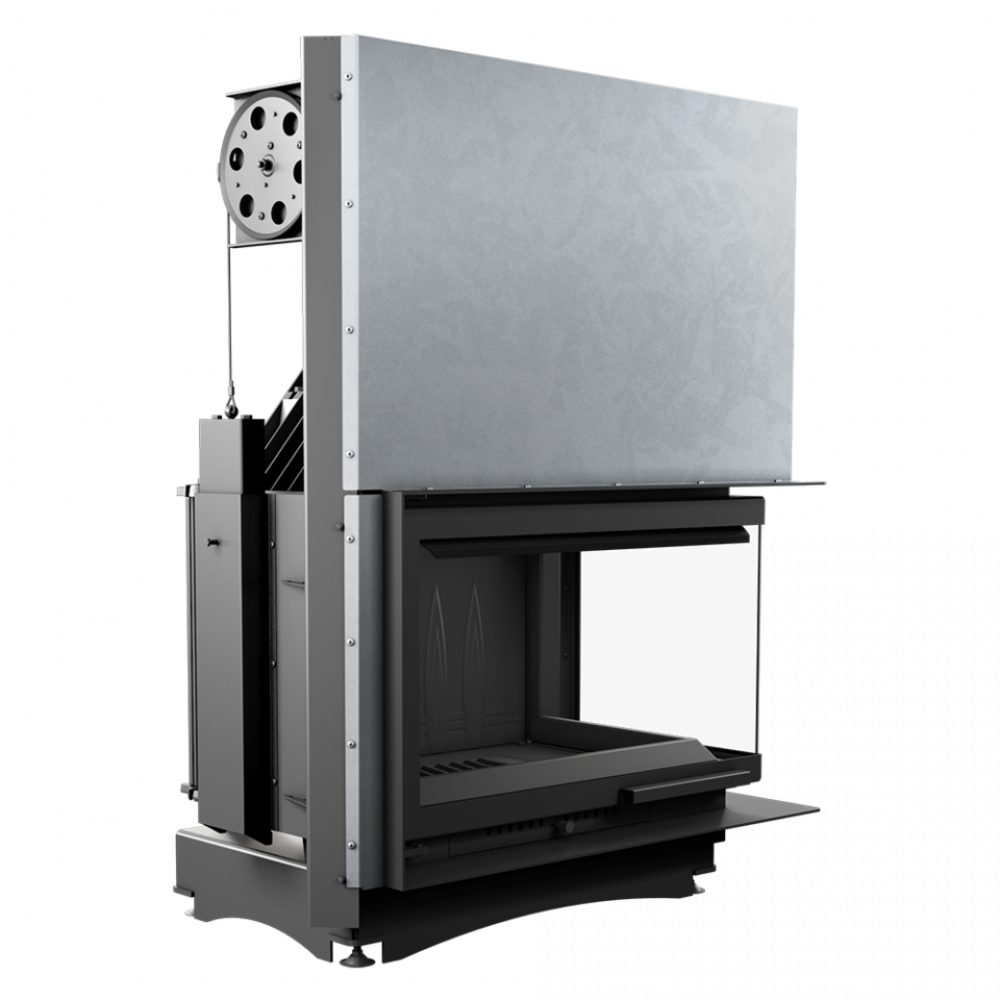 - Двойная система открывания дверец вверх (гильотина) и в сторону. Дверцы, что поднимаются и опускаются, облегчают наполнение древесиной, а механизм, который позволяет боковое открывание, позволяет очистить стекло более эффективно.
