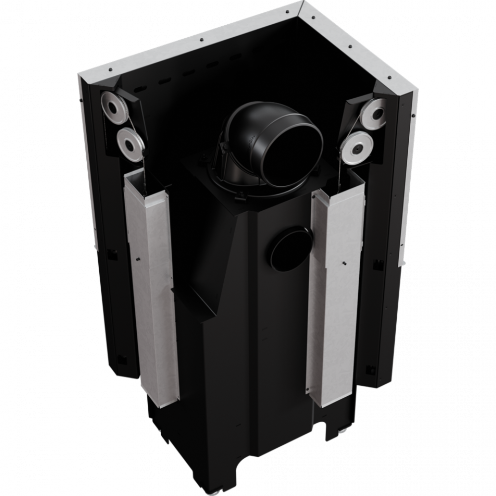 - Система внутреннего контроля дает возможность вести сервисные работы изнутри камеры сгорания без необходимости уничтожения застройки камина.
