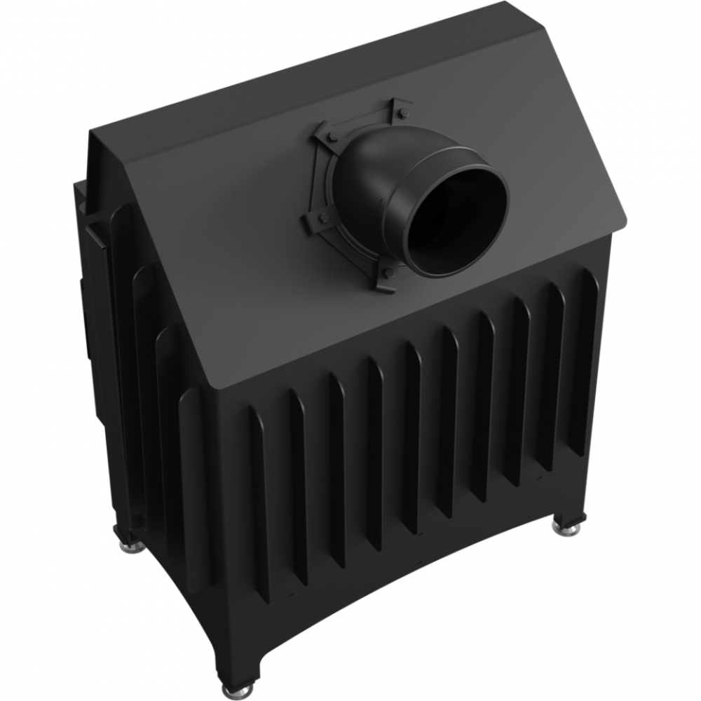 - Модель оснащена подвижным дымоходным отверстием, так что во время монтажа нет необходимости покупать дополнительные колена. Можно легко подобрать угол подключения топки к каминной инсталляции.