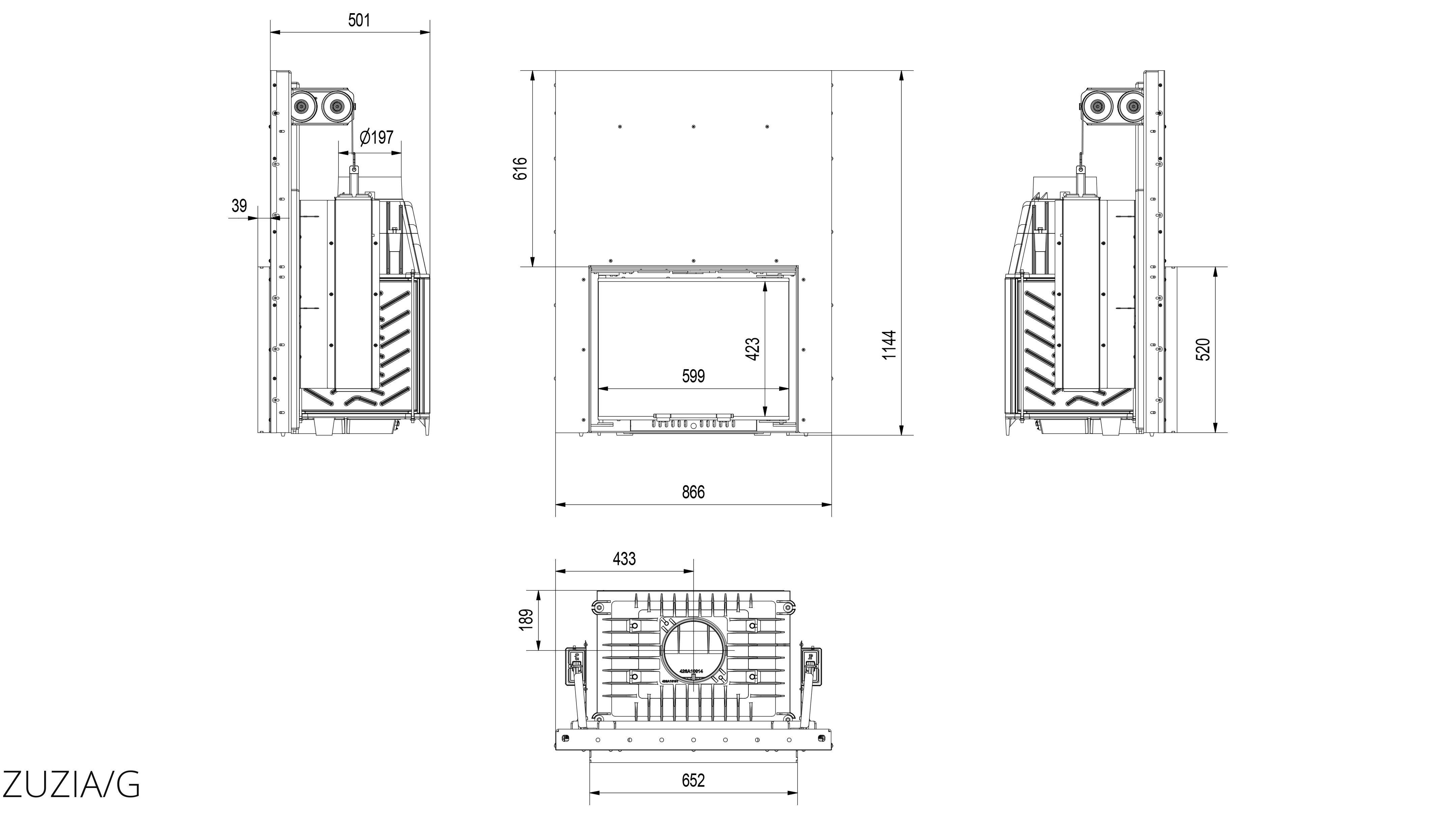 Zuzia/G (имеет гильотинный механизм открытия дверцы) – популярная серия встраиваемых каминных топок польского производителя Kratki. Данная каминная вставка оборудована гильотинным механизмом открытия дверцы. Корпус топки Zuzia/G выполнен из стали, топочная камера – из чугуна. Благодаря такому конструктивному решению топка имеет длительный срок эксплуатации. Топки, как и любое тепловое оборудование, подбираются по мощности, теплопроизводительности представленной модели достаточно для отопления небольшого жилого дома.