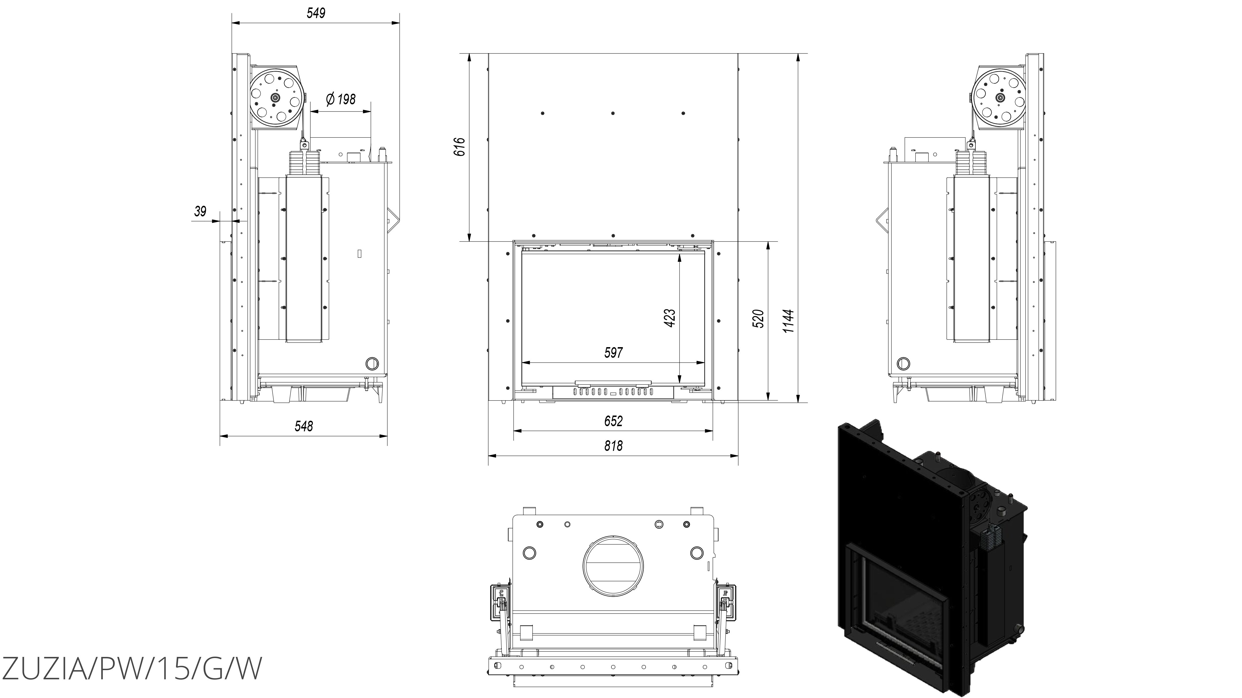 Каминная топка Kratki Zuzia/PW/15/G/W (гильотина) с водяным контуром, в которой используемые технологии и материалы создают эффективную, экономичную и экологическую топку с высокой эффективностью.