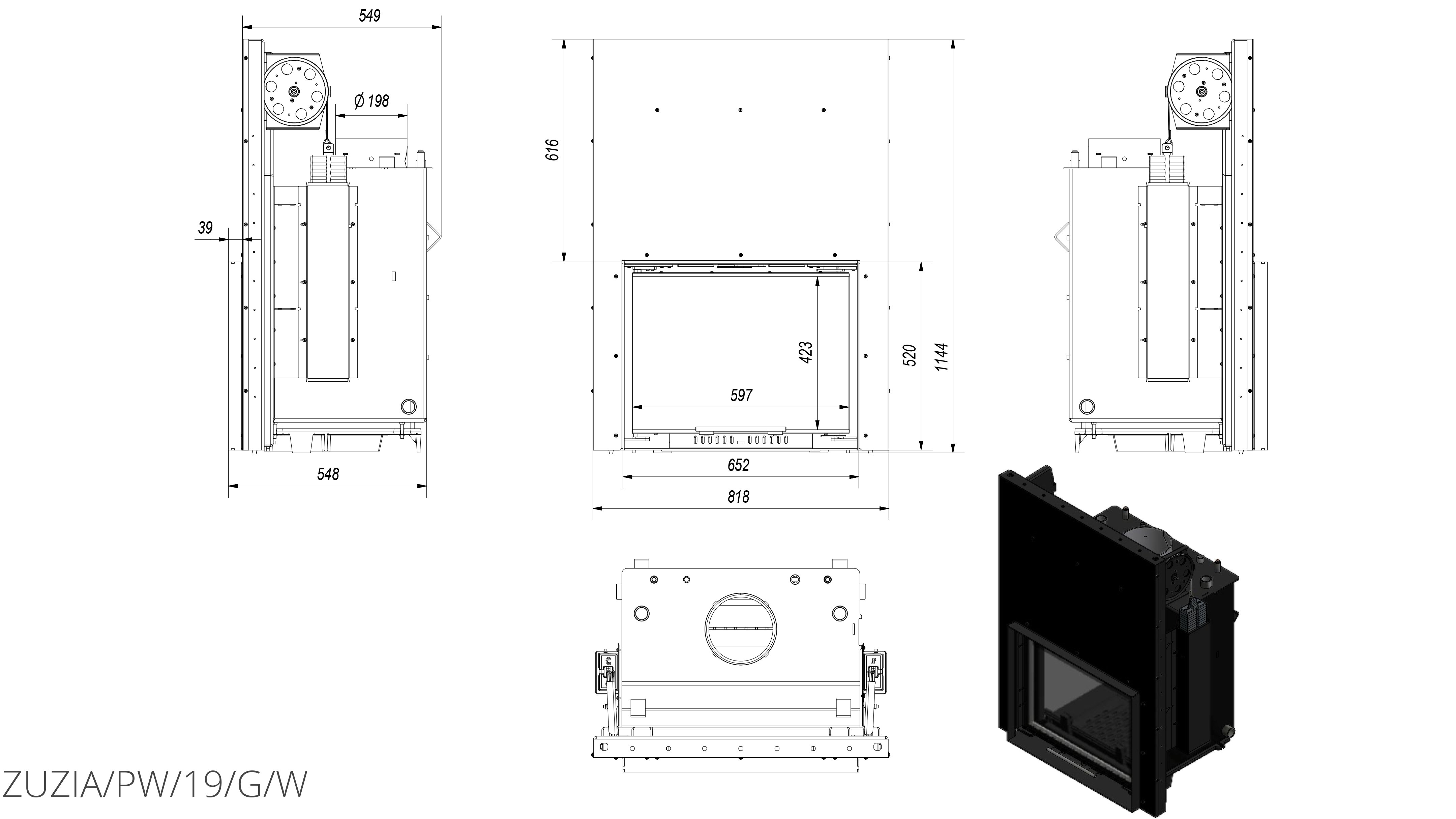 Каминная топка Kratki Zuzia/PW/19/G/W (гильотина) с водяным контуром, в которой используемые технологии и материалы создают эффективную, экономичную и экологическую топку с высокой эффективностью. Дровяная топка с водяным контуром для отопления загородного дома площадью 150-190 кв.м.