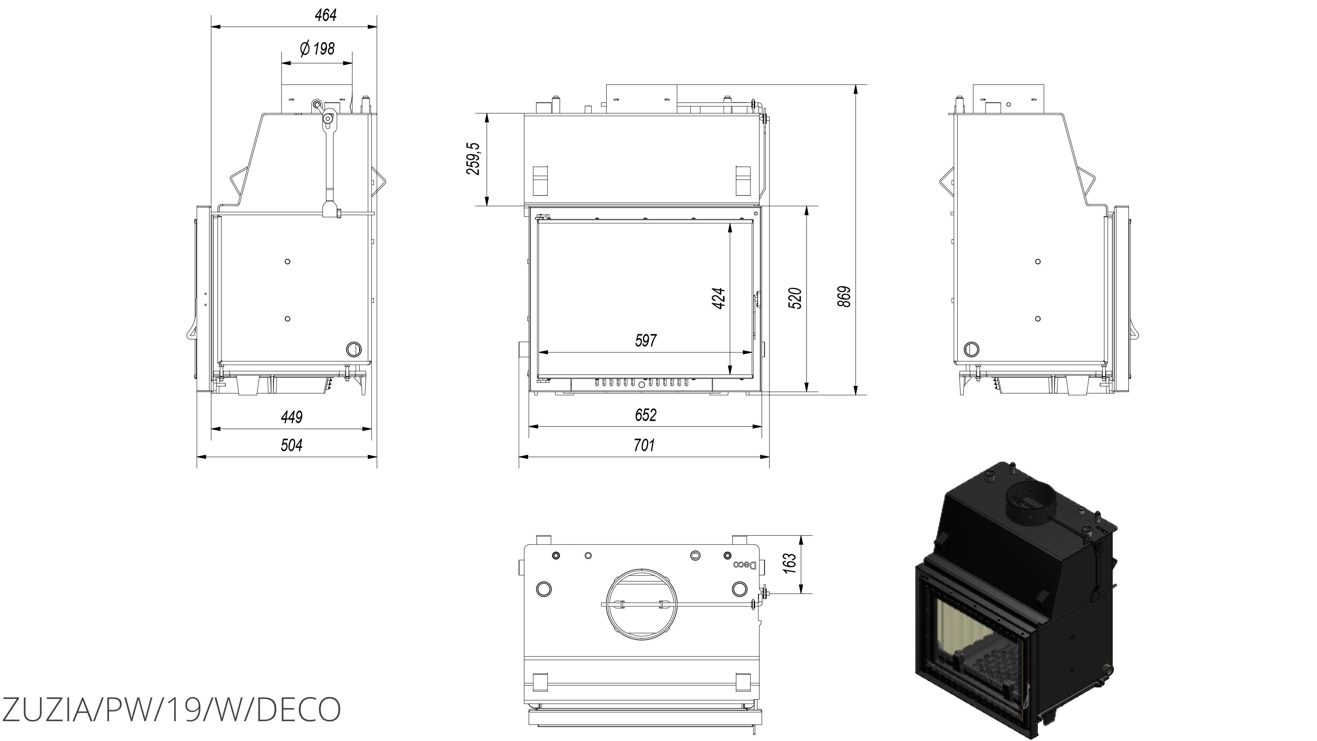 Каминная топка с водяным контуром Kratki Zuzia/PW/19/W/Deco (змеевик), в которой используемые технологии и материалы создают эффективную, экономичную и экологическую топку с высокой эффективностью.