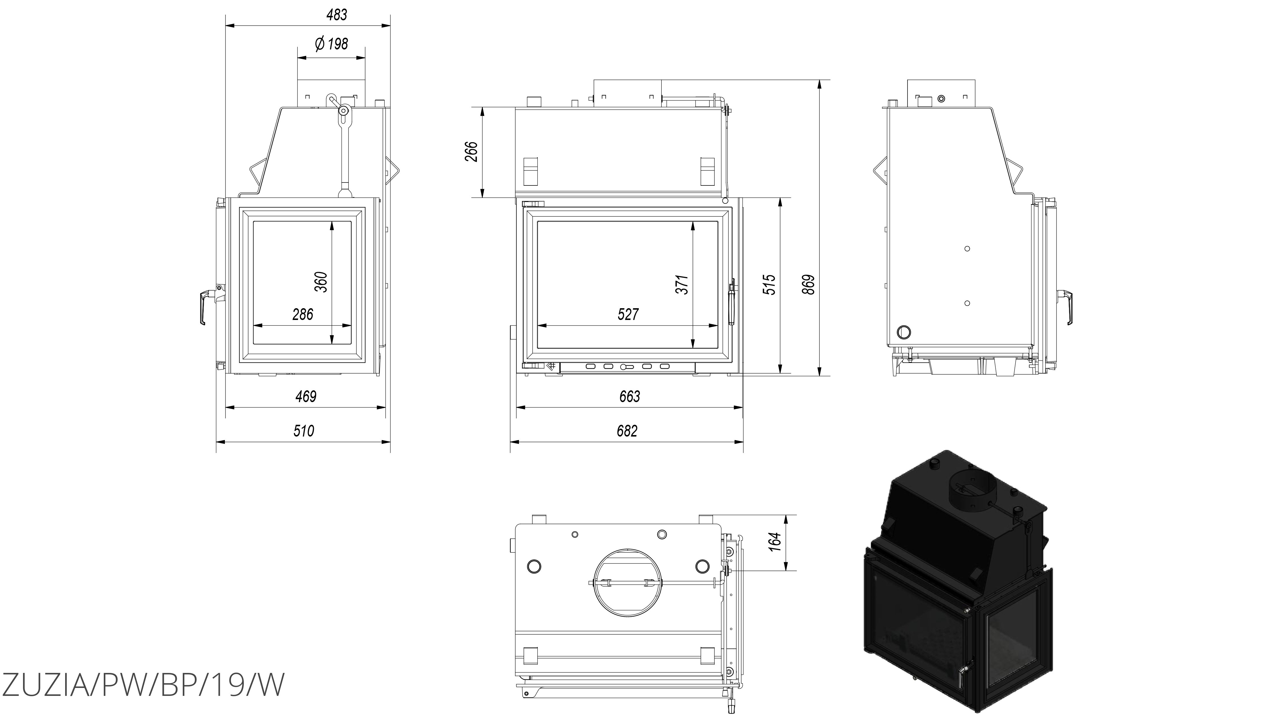 Каминная топка Kratki Zuzia/PW/BP/19/W