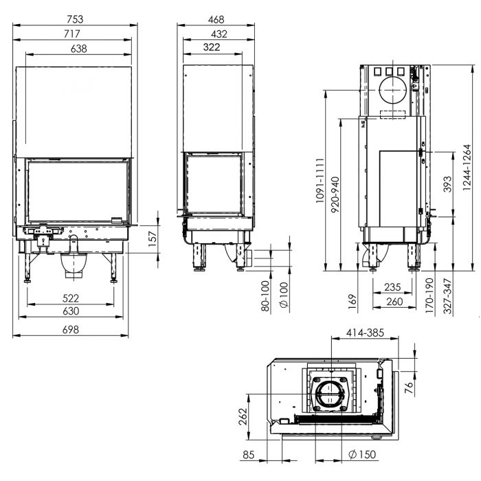 - Диаметр дымохода, (мм) 150