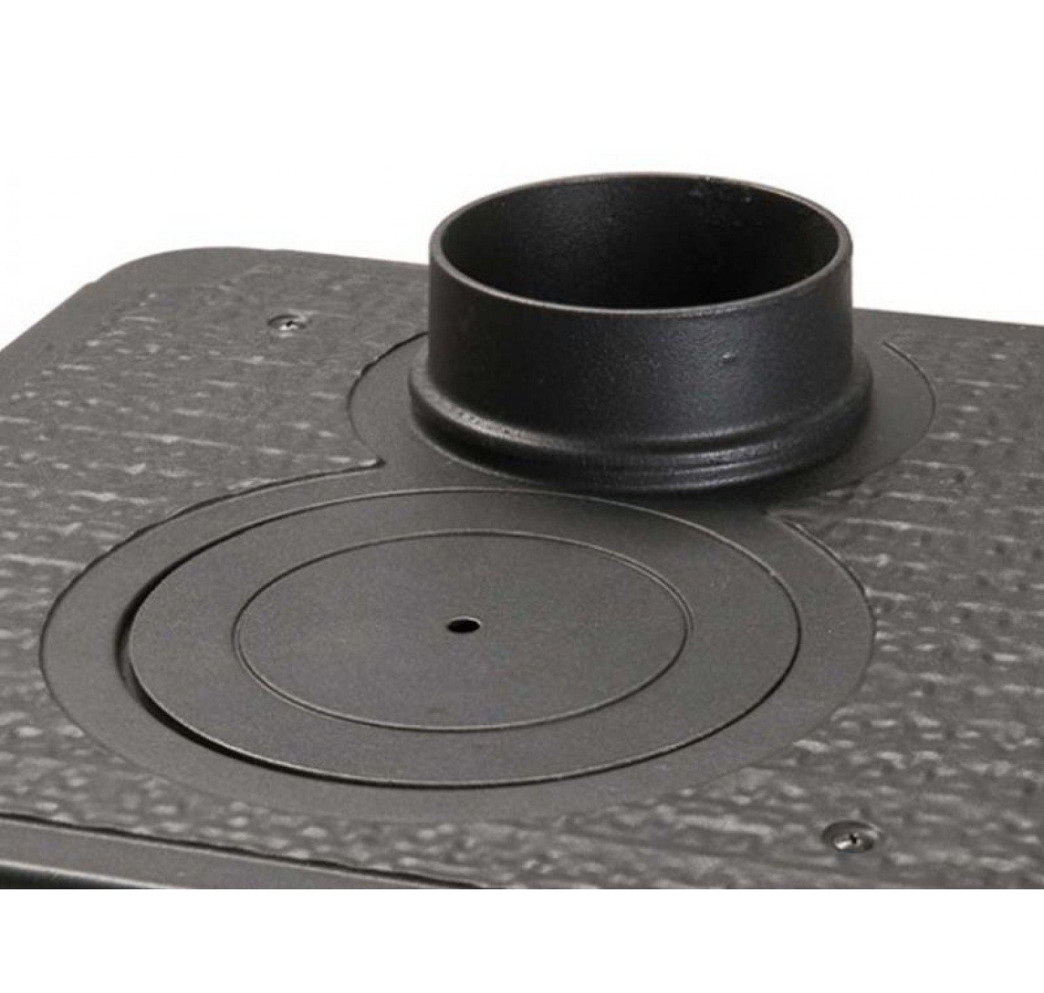 При мощности в 6 кВт печь способна отапливать до 172 куб.м. В печи предусмотрена регулировка основного и вторичного воздуха. Объемный диаметр дымохода с верхним типом подключения и небольшой вес печи позволяет установить ее достаточно просто.