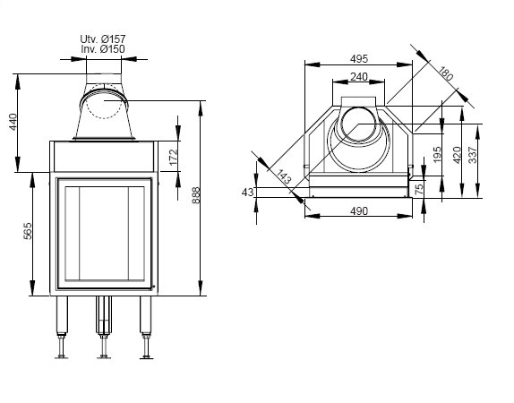 - Диаметр дымохода, (мм) 150