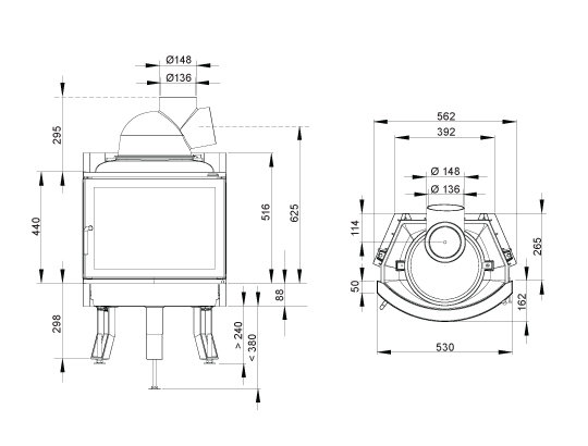 - Диаметр дымохода, (мм) 150