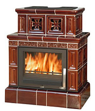 Окно топки изготовлено из стеклокерамики, выдерживающей нагрев до 800 градусов Цельсия. Тип стекла - выпуклый. Открытие - боковое.
