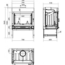 Топка: Schmid Sonderanfertigung с боковой дверцей, имеющей открытие в сторону. (Диаметр дверцы ? 550 мм. Номинальная мощность 7 кВт. Диаметр дымохода ? 180 мм)