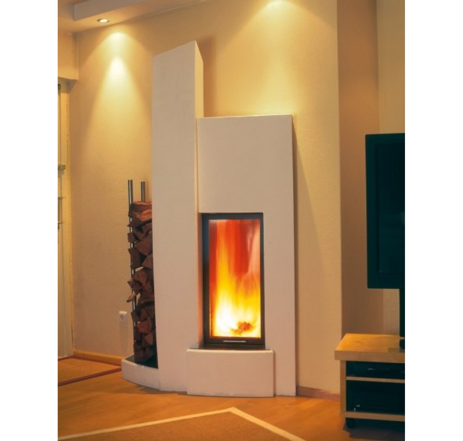 - установка дровяного камина довольно сложна и занимает много времени сама по себе, не говоря уже о попытке вписать такой камин в готовый интерьер; - устройству дымохода следует уделить особое внимание, так как при ошибках в конструкции камин может начать дымить внутрь помещения; - необходимость установки дымохода сильно усложняет процесс размещения камина в городской квартире, особенно, если квартира располагается не на последнем этаже; - необходимо заранее продумать, где будут храниться дрова; - нужно помнить, что при использовании для топки дров потребуется постоянная чистка дымохода от золы;