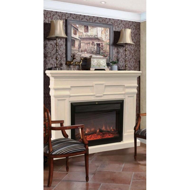 - Портал станет ярким акцентом современного интерьера, благодаря лаконичности форм и оригинальности текстуры. Сдержанный дизайн обрамления с элементами замкового стиля подчеркивается природной фактурой под натуральный камень. Такой камин добавит в обстановку комнаты солидности, а светлый оттенок портала визуально не перегрузит пространство.