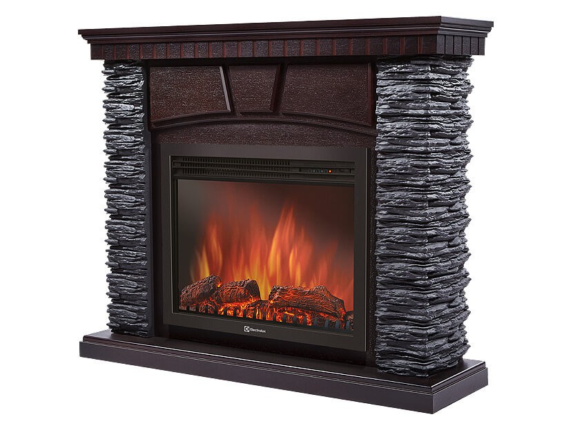 В серии порталов Porto 25 (камень сланец черный, шпон темный дуб) дизайнеры воплотили дух и очарование тихих городков с побережья Атлантического океана. По краям портал обрамлен массивными пилястрами, чья каменная структура из сланца пенится и вскипает в рельефном рисунке, создавая ощущение океанского прибоя. Над очагом Electrolux EFP/P-2520LS размещен молдинг с объемными  элементами. Для гармонии именно с Вашим интерьером, камин в сборе Electrolux Porto 25 может быть исполнен в следующих цветовых решениях: