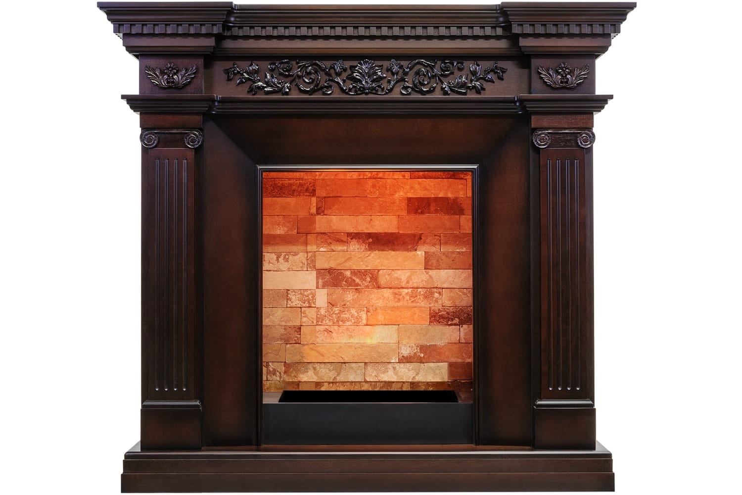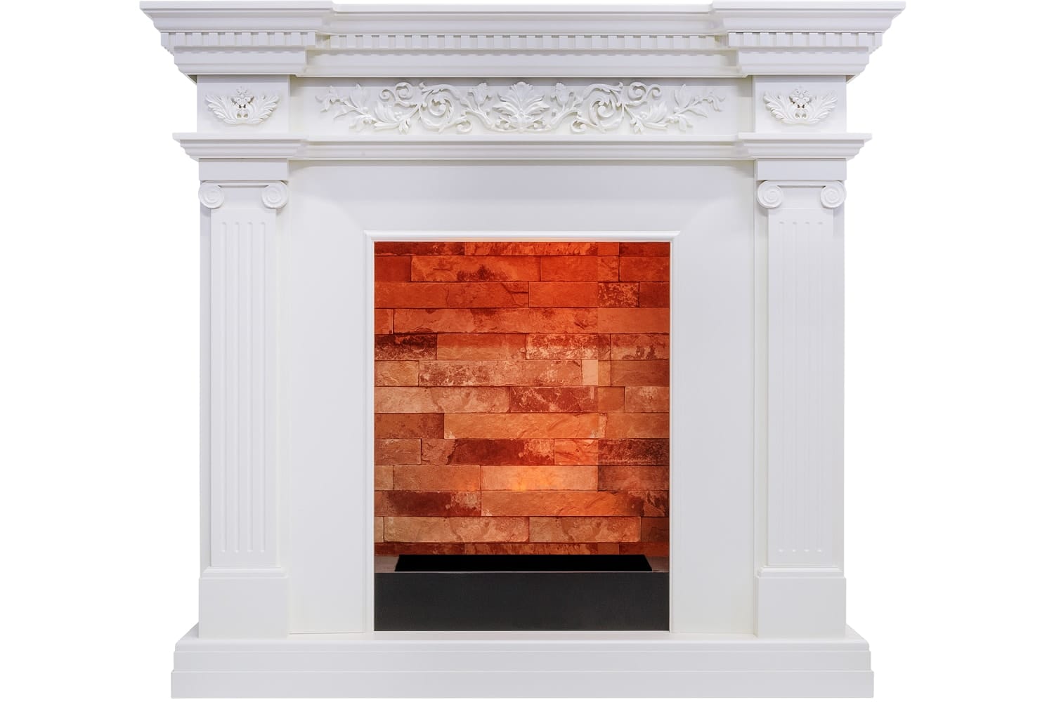 Каминокомплект Dimplex Amalfi выполнен в античном стиле. Изящный лепниной барельеф украшает фронтон и кронштейны античных колонн, расположенных по бокам портала. Цветочный орнамент придает легкую утонченность строгим линиям обрамления очага, а высокий подиум визуально вытягивает портал и завершает элегантный силуэт камина. Портал отлично подойдет как для размещения в городской квартире, так и в загородном доме.