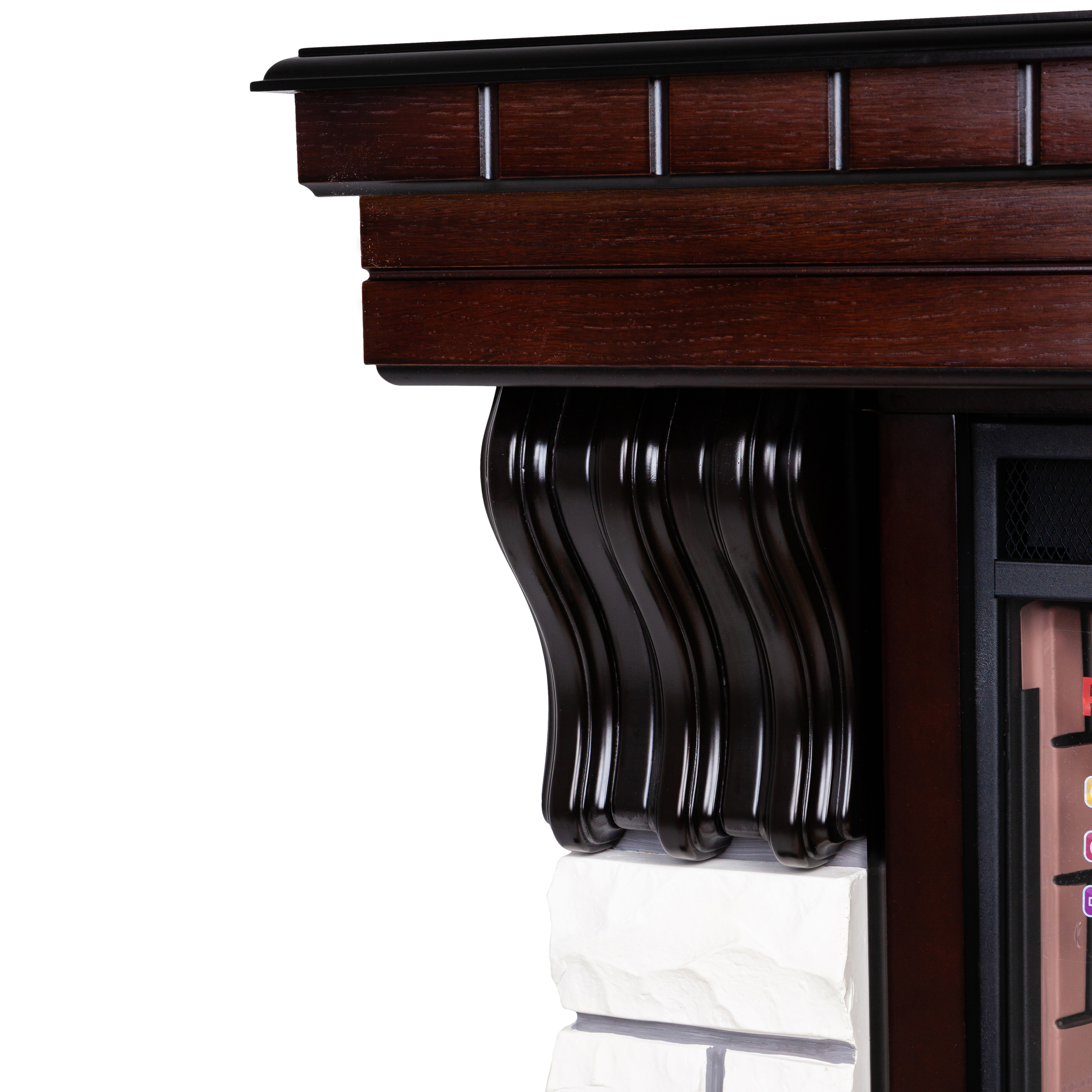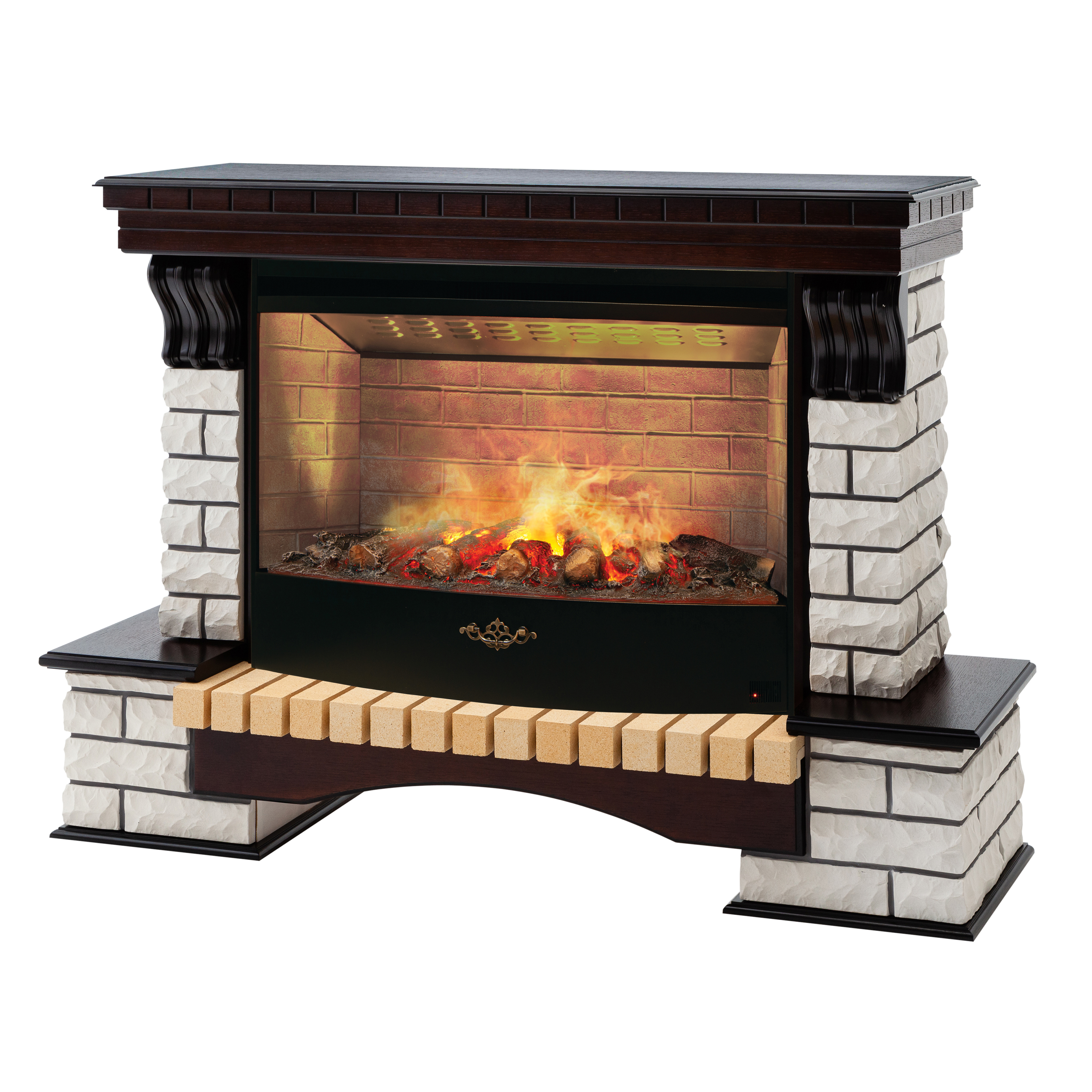 - Эффект пламени, не отличимого от настоящего, создается ультразвуковым парогенератором, вырабатывающим холодный водяной пар и муляжом дров, подсвеченным галогеновыми лампами.