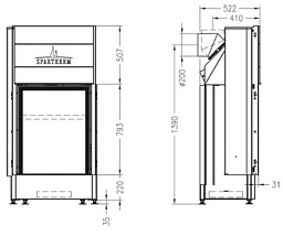 - Размеры очага ШхГхВ, (мм) 610×230×500