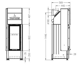 Самое компактное соотношение длины-ширины-высоты позволяет встраивать топку в ограниченные пространства и они не смотрятся громоздко. А минимальные отступы от края камина до линии огня позволяют получить более длинную линию огня при те же габаритах, что у каминов других брендов.