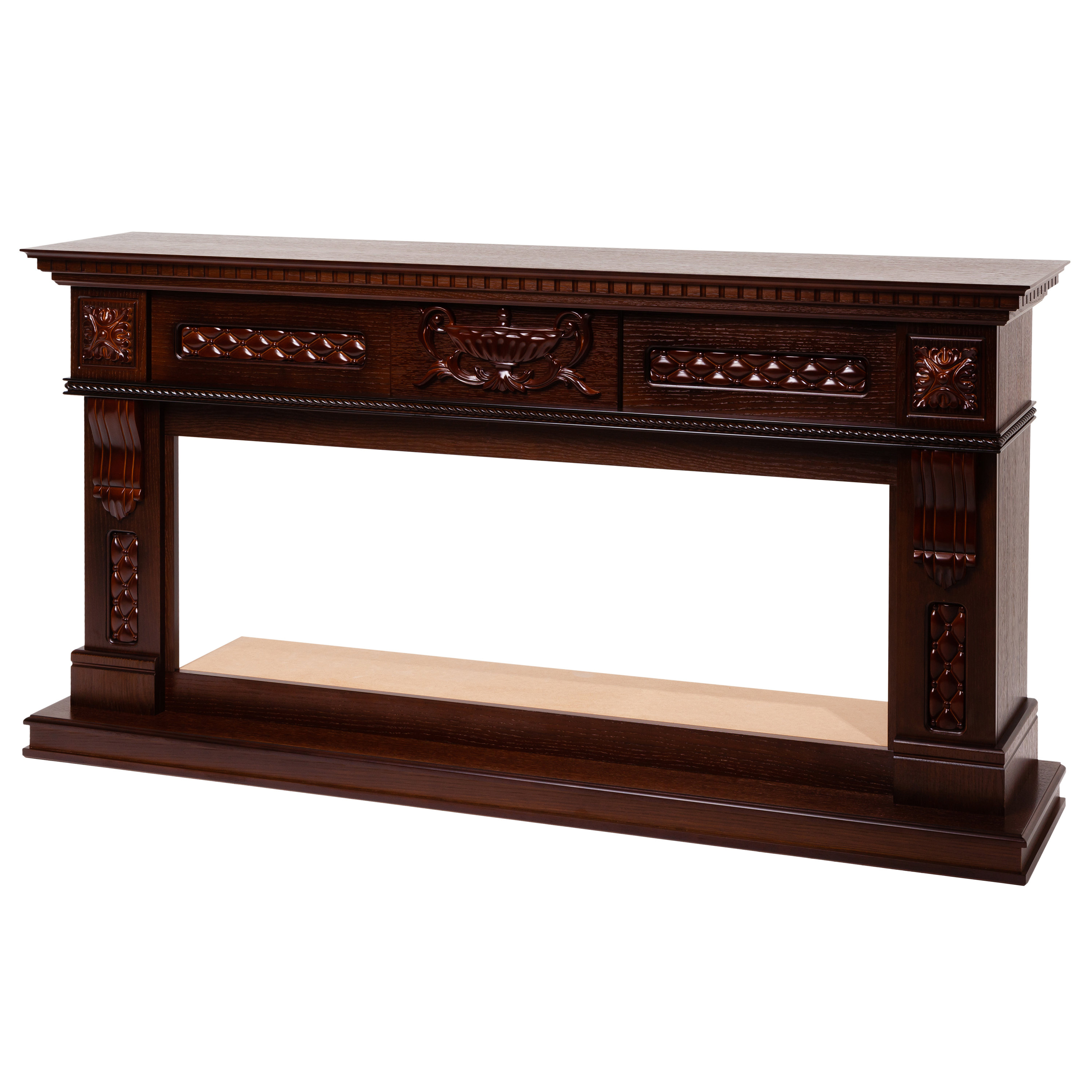 Данный портал от российского производителя RealFlame изготавливается только из качественных материалов таких, как МДФ и шпон. А классические цвета портала прекрасно подчеркивают яркое пламя камина.