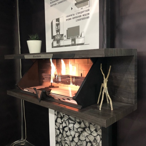 Габаритные размеры топки FEUERBACH Type 812 позволяют размещать устройство, как "консольно", так и в качестве стандартного модуля корпусной мебели (ШВГ 1200Х400Х38мм). Таким образом устройство не предполагает возведение или приобретение декоративного портала и может использоваться "из коробки". Декоративный несущий корпус позволяет значительно увеличить горизонтальные углы обзора.