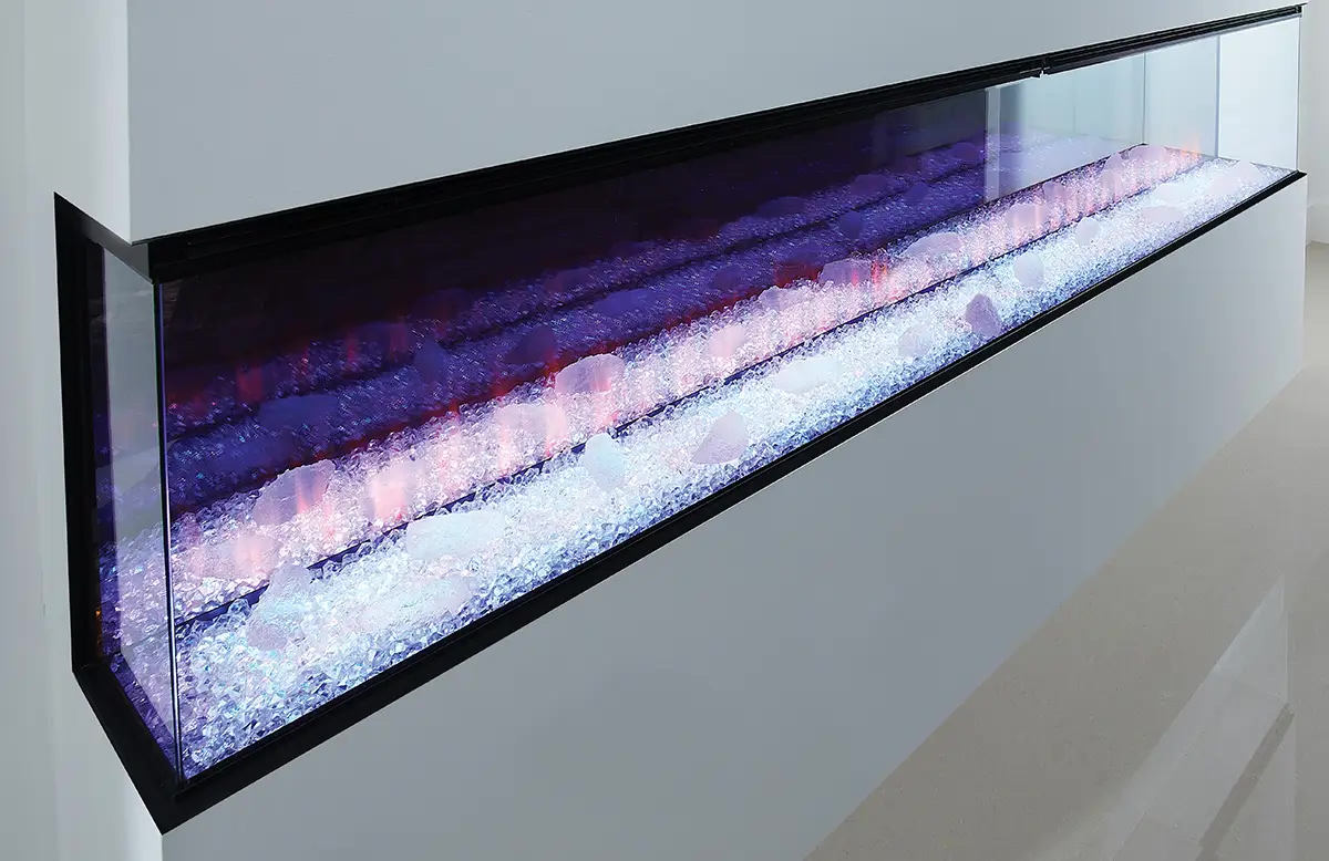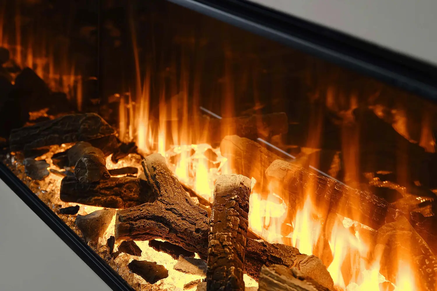 - Функция верхней подсветки: Освещает декоративные элементы (дрова и кристаллы), создавая отражение на задней зеркальной стенке, что усиливает визуальную глубину топки.